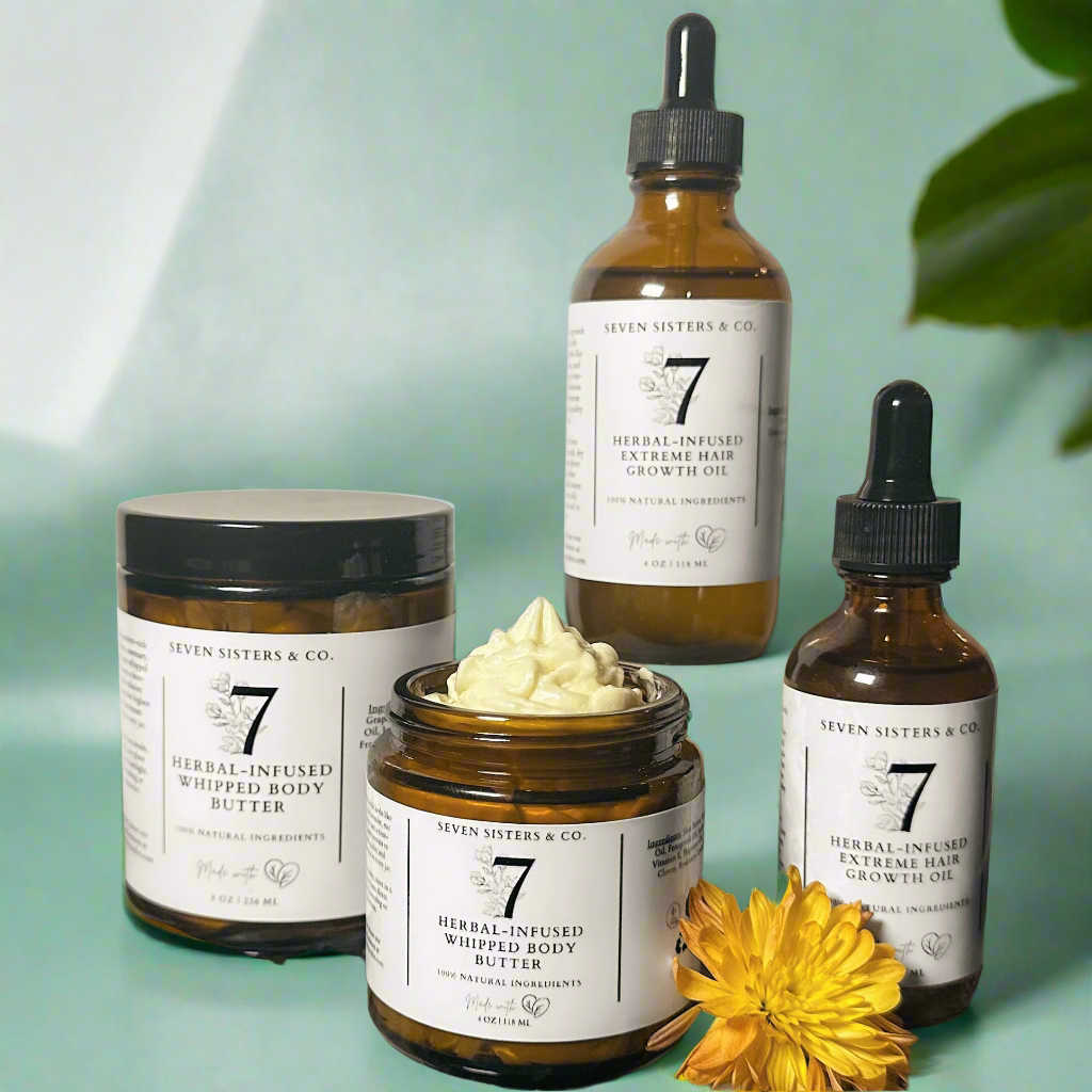 Indulge your skin in luxurious hydration with Seven Sisters & Co.'s Herbal-Infused Whipped Body Butter. Created through a time-intensive, cold-infusion process, this rich, velvety butter is packed with nutrient-rich herbs to deeply moisturize, soothe, and protect your skin. Ideal for all skin types, our whipped body butter combines nature’s finest ingredients to leave your skin soft, smooth, and radiant.